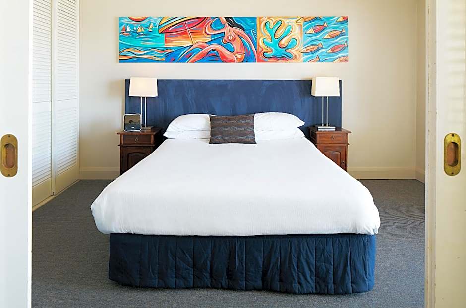 This apartment is located on the ground floor overlooking the Seashells heated pool. It features a walk-in shower, a fully equipped kitchen, laundry facilities, Nespresso coffee machine, Foxtel Cable TV and reverse cycle air conditioning. Please note additional rollaway beds are not available in this room type.